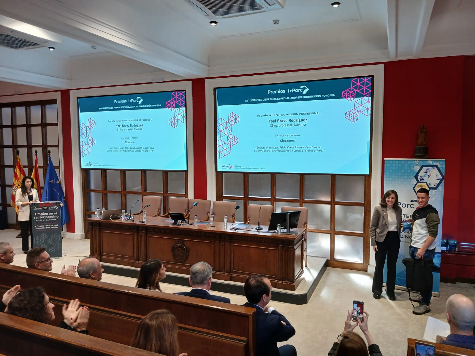 Yoel Bravo Rodríguez recibió el premio i+Porc Proyección Profesional, y Martín Lezaun Gernica el premio i+Porc Trayectoria Académica, ambos en reconocimiento a su esfuerzo, compromiso y excelencia formativa.